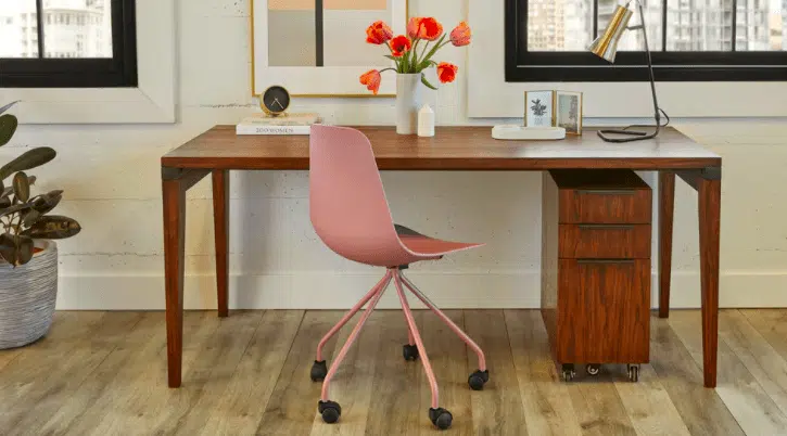 Sometimes simple is best. Streamlined and modern, this dusty pink office version of the iconic Svelti Chair is the perfect rolling chair to brighten up your office. Versatile, easy to care for, and easy on your budget too – only $69. Not into pink? It comes in six colors.
